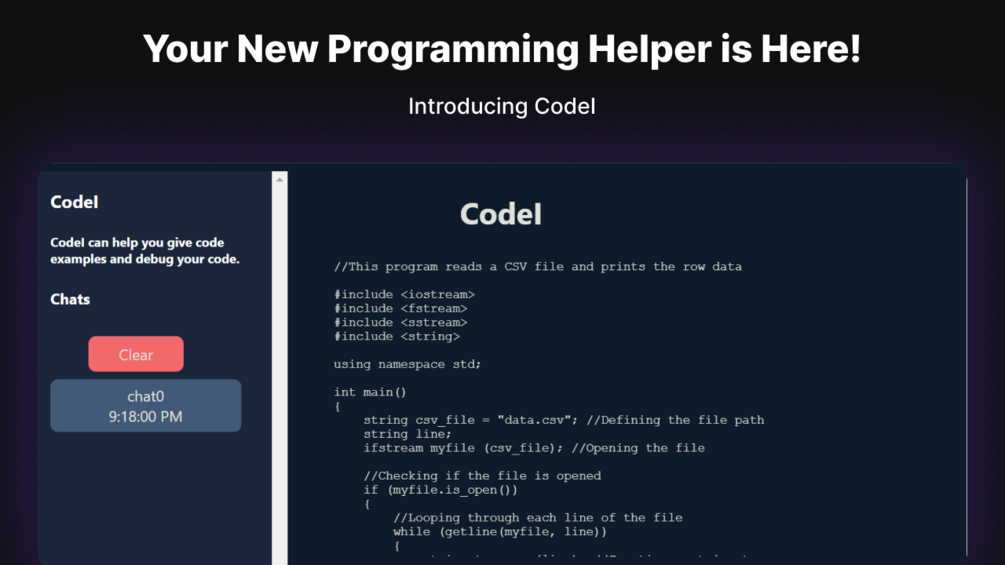 CodeI (Pronounced Code-eye) is an application that helps you give examples of code and debug them. It provides a platform for developers to use AI and get instant examples. CodeI also helps developers find out what an error is and what caused it by giving an example scenario.